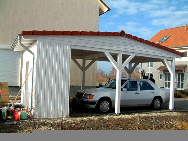 Dacheindeckung mit Glattziegel, Dachklempnerei in Titanzink, Carport mit Gründach